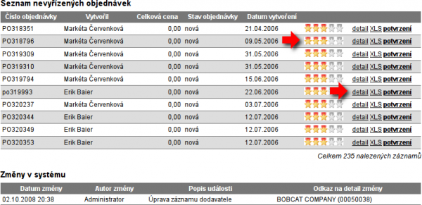 Ve posledním přehledu najdete seznam změn, které byly v nedávné době v systému realizovány a týkají se vašeho účtu. Těmto záznamům věnujte zvýšenou pozornost, zvláště v případě, kdy dojde ke změně již vystavené objednávky. V pravé části tohoto přehledu najdete odkazy na stránky, kde je možné si zaznamenané změny zobrazit.