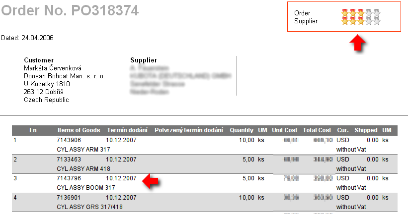 Use detail function to see full order. In the top right corner a subjective rating appears again but it is not only order rating but also supplier (you) rating.