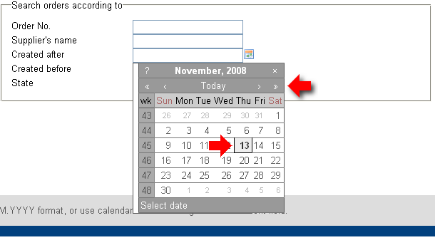 Next to the fields, where is supposed to insert the date, a calendar icon is displayed. By clicking on the icon a help tool to set the date will appear.