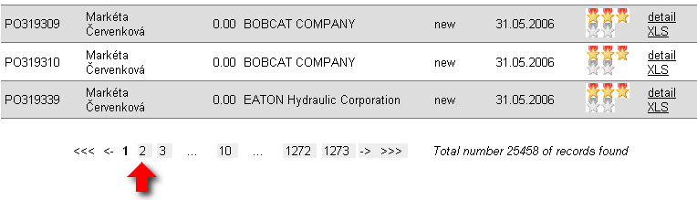 On the right part of the statement you will find, as on the Notice board, Order ratings and links for other actions which are available to be executed together with the particular order. Table shows just as many orders as User default. For displaying other pages of the statement use navigational buttons under. Single numbers represent pages of the statement and at the sides you will find buttons for moving forward, backward, to the first or the last page of the statement. You will also find the information about total number of records which are accordant with your lookup.