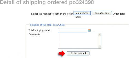 The orders, which have been confirmed, the order statement will show the shipping button. By clicking on this link you get on the page, where you can insert information about order dispatch in the portal.