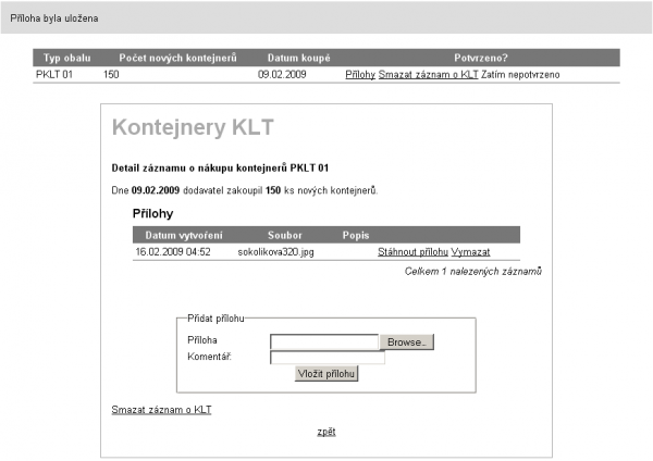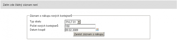 Should the situation involving the purchase of new KLT returnable packages occur, the same rule is to be applied as in case of entering the initial state into the system. The purchase must be entered into the supplier portal, namely including a scan of the invoice or of another document proving the acquisition of the stated packages at the corresponding amount.