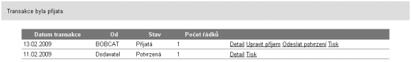 To transfer the transaction back to our planner, you must confirm sending of the delivery note back to Bobcat by clicking on the Send confirmation reference in the list of transactions.