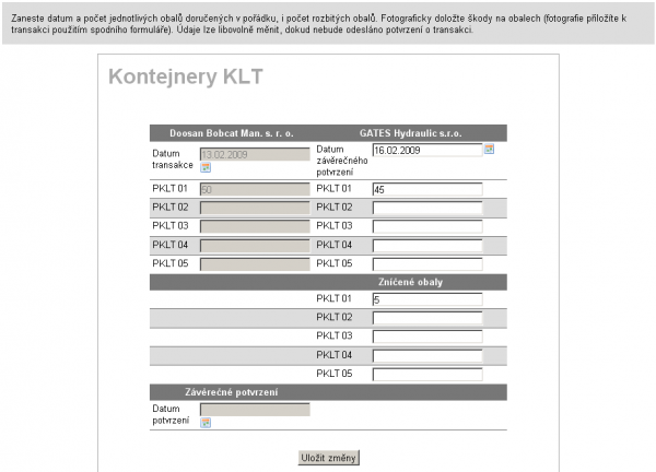 Here you will fill in the form by stating the package type to be returned, the number of the required items and the required date of the return of KLT packages.