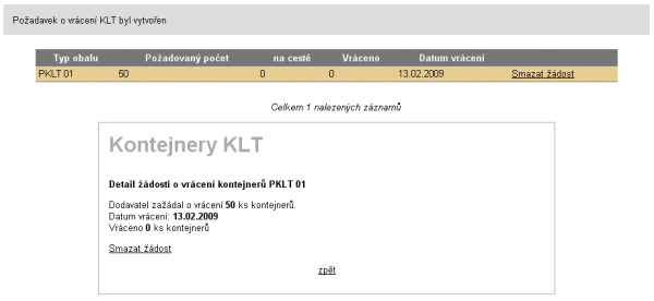 Until the whole transaction is closed, you have an opportunity to delete the request (e.g. if sending KLT packages back is rejected by our planner). Your request may be also deleted by the planner directly.
