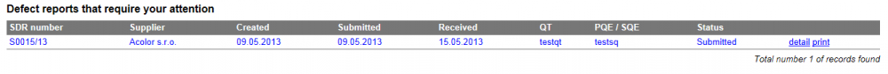 The 4D section of the SDR contains information about the Root Cause of the identified defect. The Root Cause is expected to be identified and verified by Supplier within 14 days from submit date. This section also contains information about the date when the defective parts are either scrapped or sent back to Supplier. Once an invoice is issued for the SDR cost the inoice number will be displayed here.