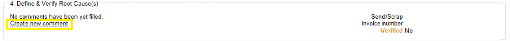 • Create new comment - the section where Supplier is required to fill in info about RC