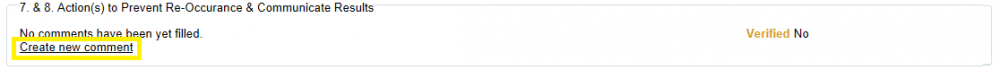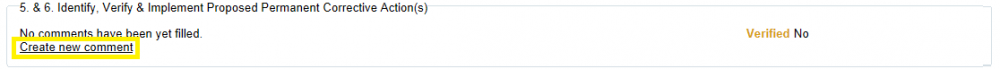 • Create new comment - the section where Supplier is required to fill in info about Preventive Actions
