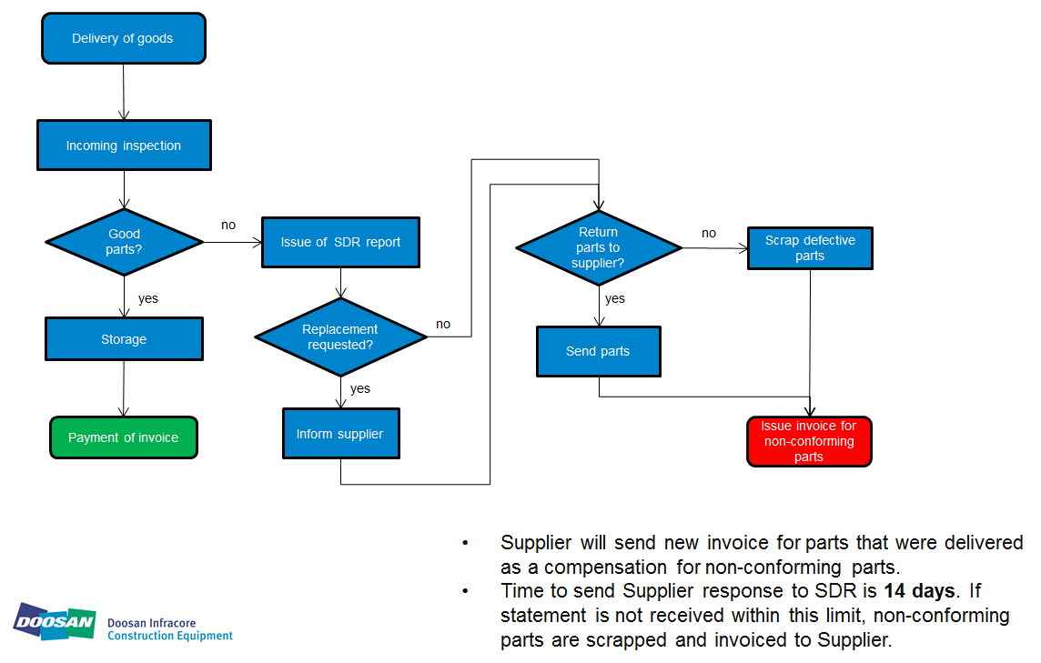 On the following picture is simple schematics explaining the disposition of defective parts and invoicing.