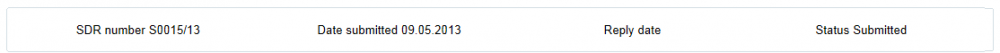 SDR header contains basic information like SDR number - unique identification of SDR, Date submitted - the date when SDR was sent to supplier, Reply date - the date when supplier first responded to issued SDR and Status - the current SDR status. There is no Supplier editable data in this section.
