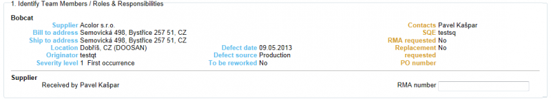 SDR header contains basic information like SDR number - unique identification of SDR, Date submitted - the date when SDR was sent to supplier, Reply date - the date when supplier first responded to issued SDR and Status - the current SDR status.