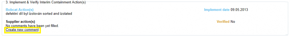In the 3D section Bobcat and Supplier start the communication about the analysis of the corrective actions for the identified defect. Typically all SDR will contain information from Bobcat Quality about the Interim Containment Action(s). The same is required from the Supplier.